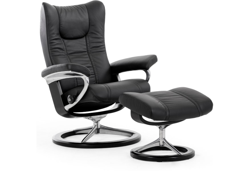 Stressless Wing Signature Base Recliner Chair And Ottoman By Ekornes Stressless Ergonomic Furniture