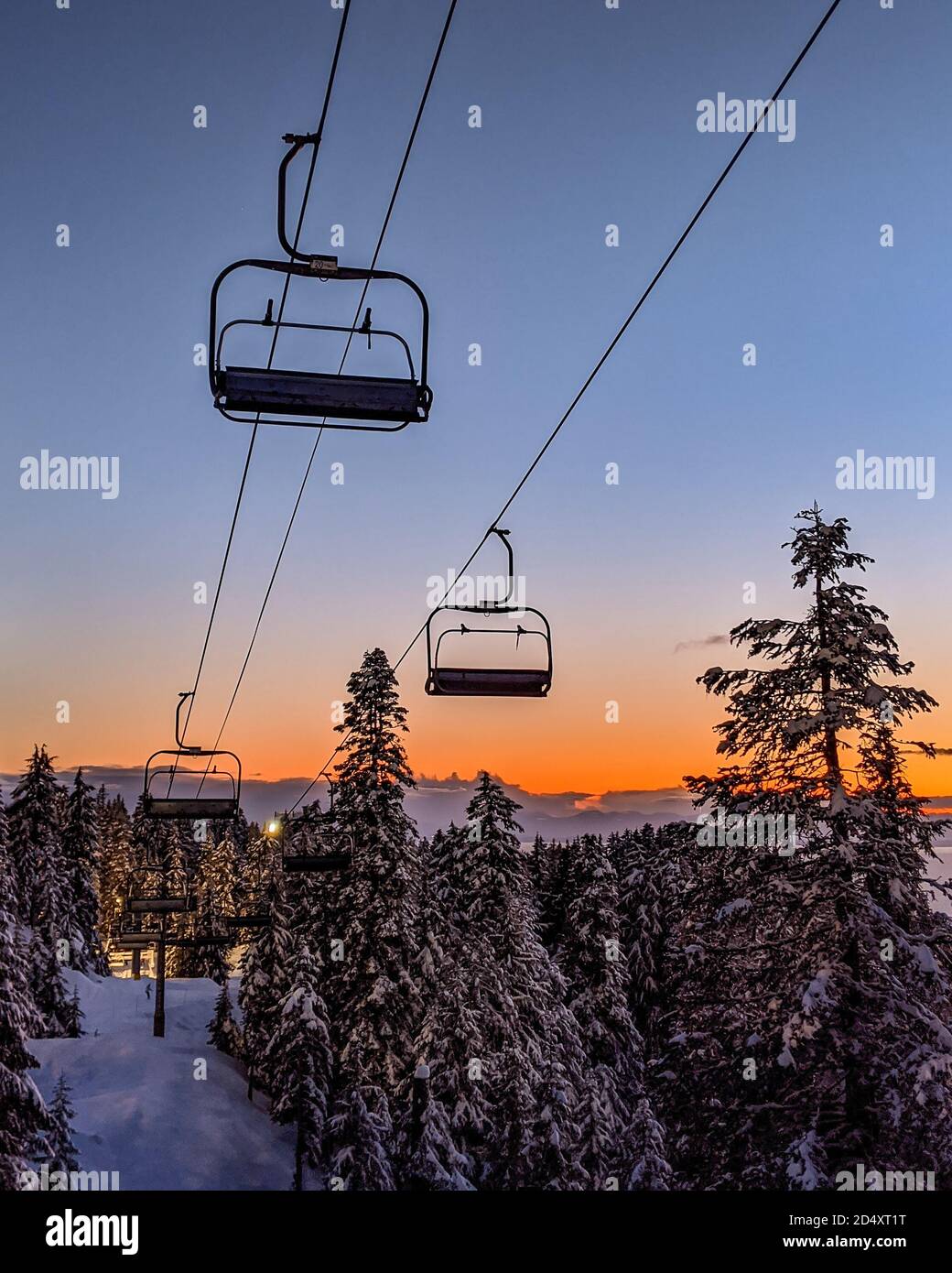Empty Chairlift In A Closed Ski Area During An Orange Sunset Grouse Mountain Vancouver British Columbia Canada Stock Photo Alamy